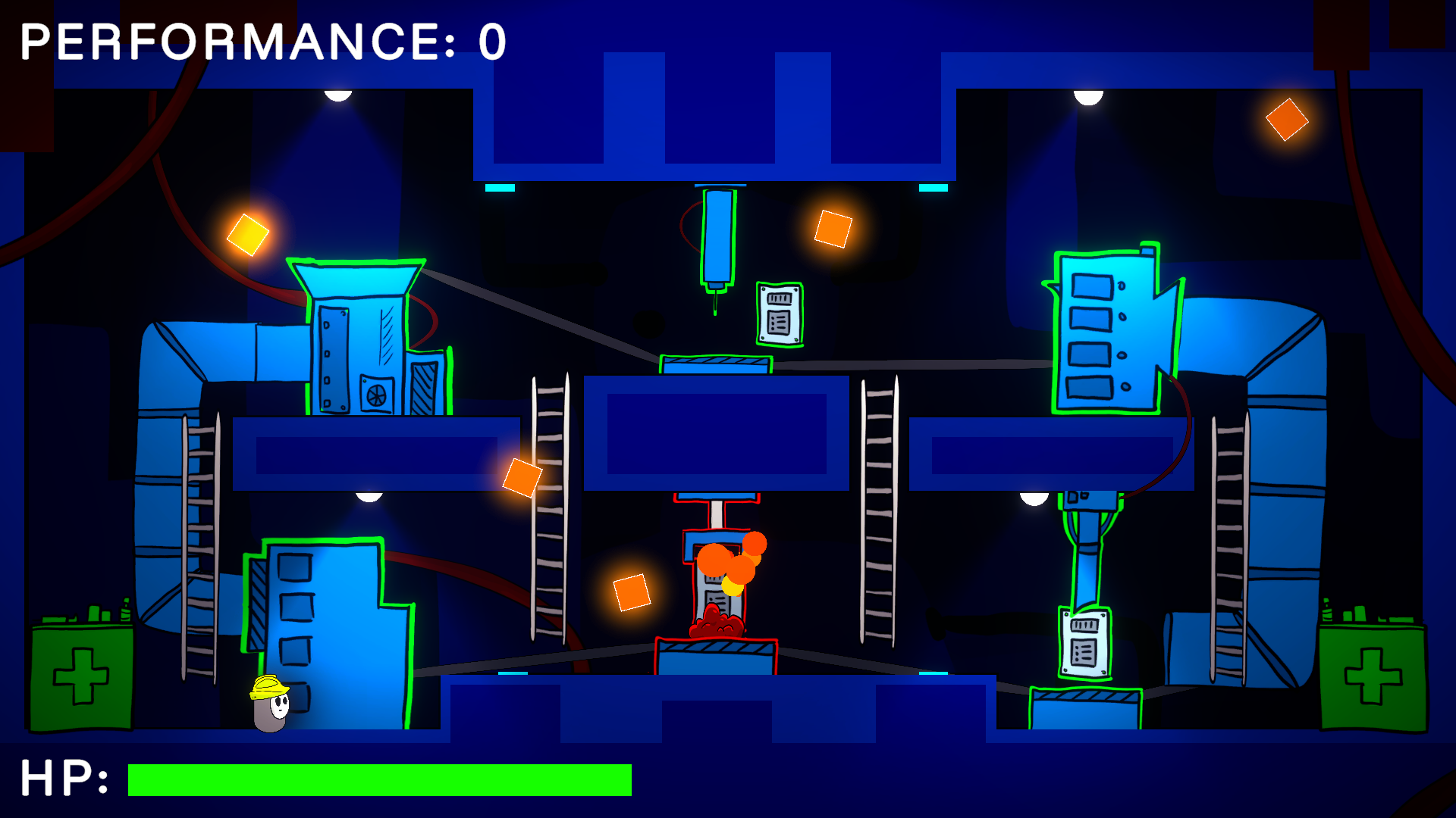 Your job is that have to mantain the series of machines that make up The Loop. The machines will get damaged overtime, you have to dodge the hazards that they spew out, and when you are near the machine, you have to fix it by completing a minigame.